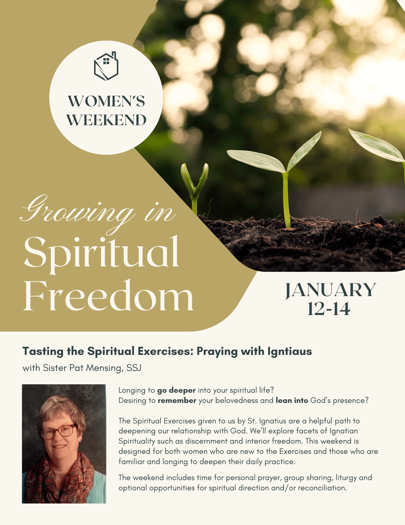 The Spiritual Exercises given to us by St. Ignatius are a helpful path to deepening our relationship with God. We’ll explore facets of Ignatian Spirituality such as discernment and interior freedom. This weekend is designed for both women who are new to the Exercises and those who are familiar and longing to deepen their daily practice.