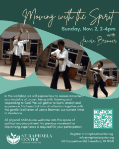 In this workshop we will explore how to access movement as a modality of prayer, being with, listening and responding to God. We will gather to learn, stretch and experience this beautiful form of reflection together with the gentle facilitation of Janira Bremner, our current Artist-in-Residence. All physical abilities are welcome into this space of spiritual accompaniment. No previous movement or improvising experience is required for your participation. Registration deadline: October 31 *Free-Will Donations are appreciated to support our ongoing arts programming.